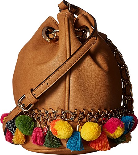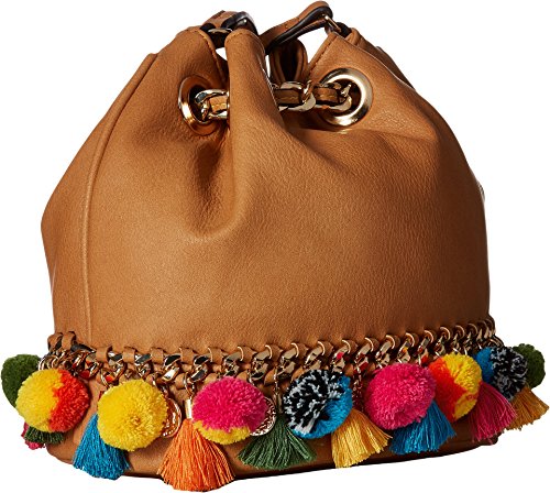 -. Feature : Small novelty bucket bag with mini pom pom / Chain and tassel details.