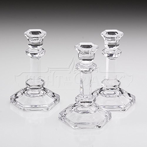 - Feature : 3 Hexagonal Shaped Glass Taper / Stick Candle Holder 5.5 Inch Tall / Ships with bubble wrap with high quelity box for secure shipping / Will accommodate most standard taper candles / Great for weddings, wedding planners, dinner parties / Size 5.5 Inch Tall made from high quality glass