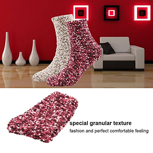 -. Feature : ☎SPECIAL DESIGN: The elastic bands at the top of these Women's Fuzzy Socks will not compress your legs, providing the best feeling and preventing these Warm Crew Socks from sliding down. The pattern looks like many different colored granules gathering together and creating fascinating clear texture. / ☎SIZE & COLOR: One Size (Women's Shoe Sizes 4-9) fits most with high elasticity. You can easily put on these Cute Casual Socks to get a perfect comfortable feeling without P.R.Icking or hurting your skin. Our Sleep Socks come in 2 cute colors (light pink and rose red) and many color combinations for you to choose from. Wearing these Fashion Fuzzy Socks, you'll become more vigorous and beautiful no matter what clothes you match at home or outside. / ☎CHARACTERISTICS: These comfortable Home Slipper Socks are lightweight and stretchy. Soft material guarantees a relaxing feeling that comforts your feet like gentle warm hugs. The soft touch feeling with special cute appearance and extra warmth would give you a perfect wearing experience! / ☎WOMEN'S FUZZY SOCKS: Our high quality Floor Socks are ideal gifts for your family, friends and your loved ones on birthday or some festivals. These Fuzzy Casual Socks are decent and sweet, warm and soft to accompany you in cold days. Perfect Fluffy Socks, you deserve it! If you are not satisfied with our product or have any question, please feel free to contact us via email, and we'll deliver a satisfactory solution ASAP. / ☎SUITABLE OCCASIONS: Perfect to wear with slippers at home, or simply wear these Women's Terry Socks on the floor indoors. You can also wear these socks inside boots or shoes when you go outside in cold weather. Our Fluffy Slipper Socks can even be worn during sleep, which will provide you with maximum warmth and keep your feet away from coldness, thus ensuring you a reassuring night with a deep sleep. Suitable for sP.R.Ing, fall and winter; also can be worn in the air-conditioned room in summer.