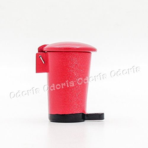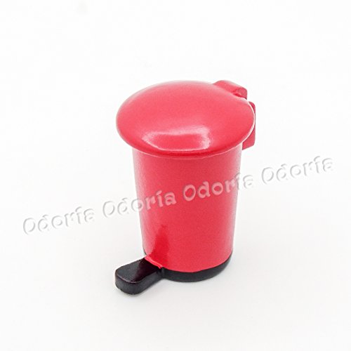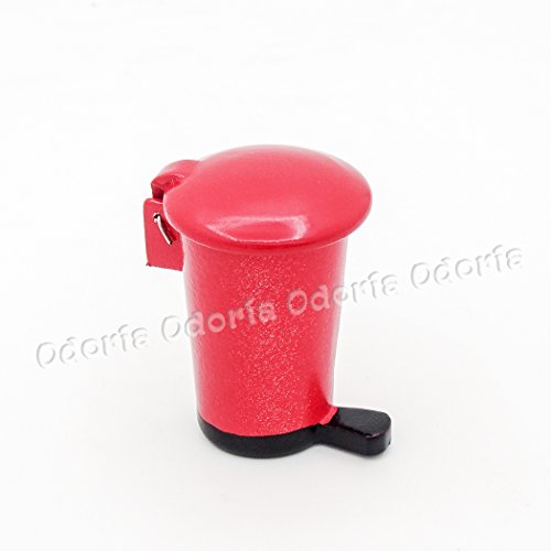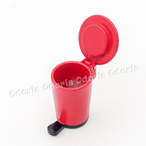 -. Title : Odoria 1:12 Miniature Red Trashcan with Lid Dollhouse Decoration Accessories