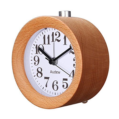 -. Title : AUDEW 目覚まし時計 置き時計 連続秒針 音無し 照明ライト付き 木製 電池式 かわいい 丸型 ブラウン