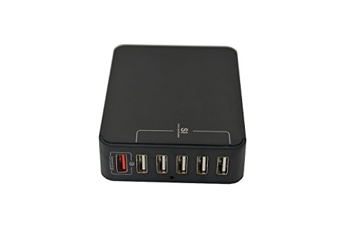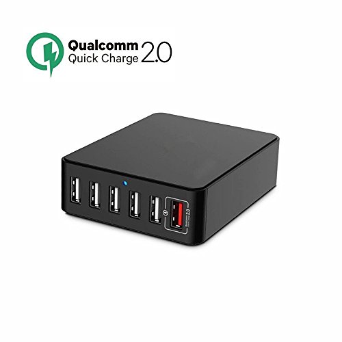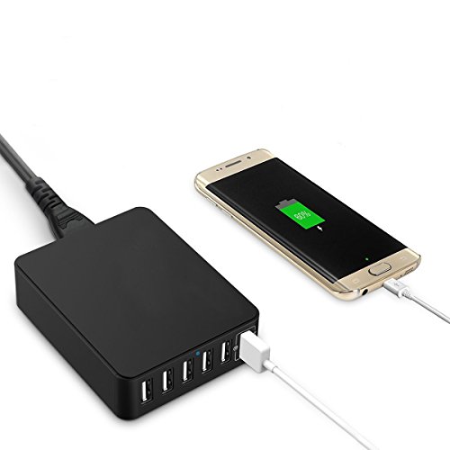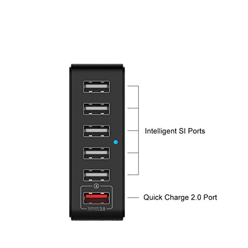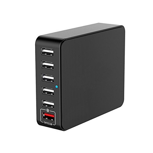 YKSH Quick Charge 2.0 6-Port USB Desktop Charger 5V/7A Total Output Fast Charging Station for iPhone iPad Camera Smartphone Tablet