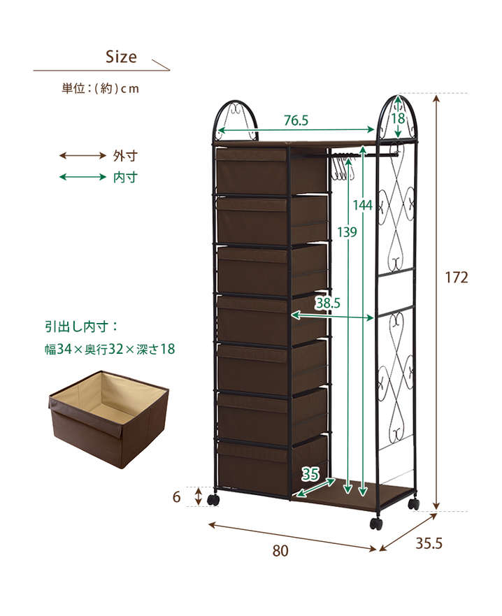 ●(約)幅80×奥行35.5×高さ172cm