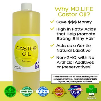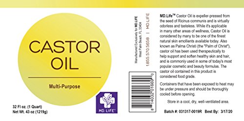 Save $$ MD.LIFE Castor Oil - 32oz Compare to Aria Starr Castor Oil Cold Pressed - 16 FL OZ - BEST 100% Pure Hair Oil For Hair Growth, Face, Skin...