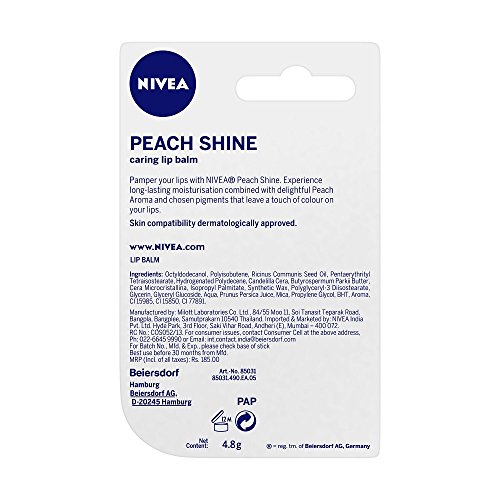 Nivea Lip Balm - Fruity Shine PEACH -Pack of 1