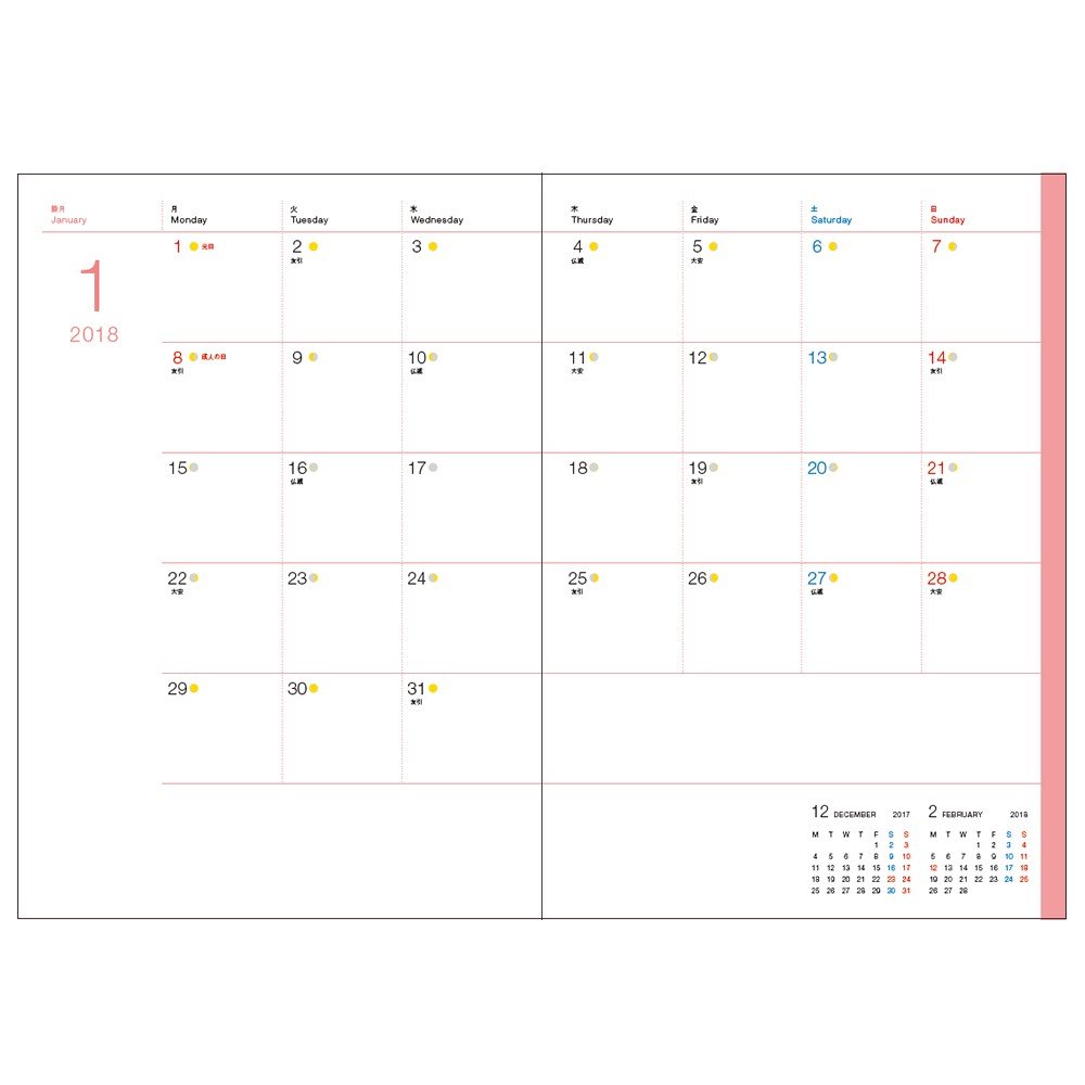 Monthly type diary popular with easy-to-write size.