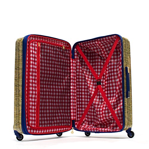 Studio : Concept One Luggage and Backpack Publisher : Concept One Luggage and Backpack Binding : Apparel Product Description Our Provence Picnic Luggage is a whimsical and fun take on a classic wicker basket. The hard outer shell is a wicker print on our durable shiny sided cases and the lining is a red and a white classic gingham... yes we are faux real and it is fabulous! Keep your travel essentials organized in the spacious main compartment, and wheel around effortlessly on wheels with a gold-finished telescoping handle. We added our signature socialite stripe to finish the look in a way that is unmistakably Margaret Josephs and Macbeth Collection. Tres Chic! Macbeth Collection is world renowned for putting the "fun into function" and this luggage is no exception. Margaret Josephs is a true jet-set gypsy and loves to travel. Each of the Macbeth Collection luggage pieces has been designed to be the ultimate travel companion. 0
