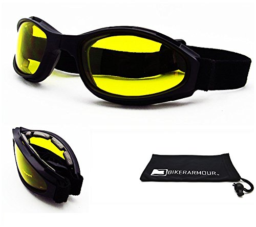 -. Title : Motorcycle Folding Goggles for Men and Women - Smoke, Clear or Yellow Lenses - Free Large Microfiber Cleaning Case
