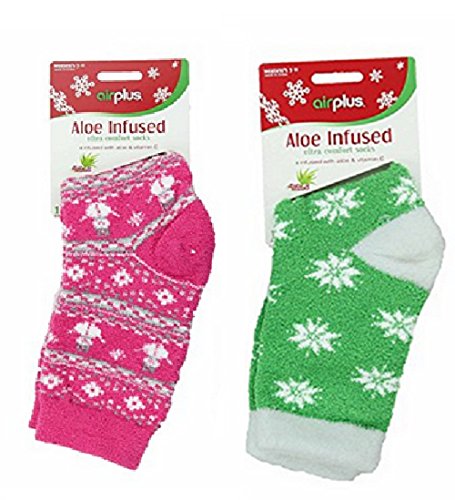 Product Description Airplus Aloe Infused Moisturizing Socks Airplus for Her Aloe-Infused Spa Socks will give you that pampering, relaxing spa feeling right in your own home. They will keep your feet warm and comfortable, while the aloe treatment leaves them feeling wonderfully smooth and soft. Features: Includes 2 pairs Ultra Moisturizing 0