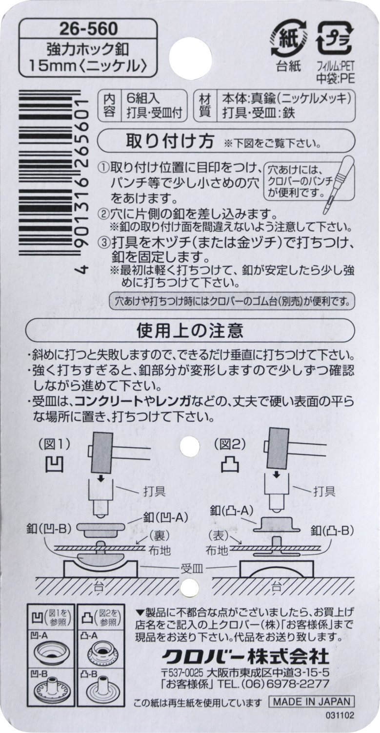 Clover powerful hook button nickel (japan import)