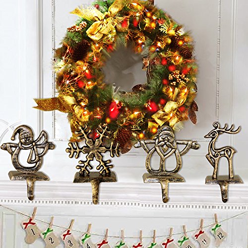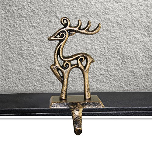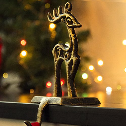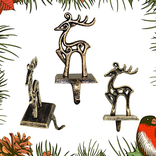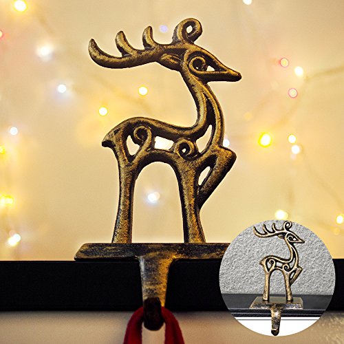 Bluecookies Christmas Reindeer Stocking Holder Heavy Cast Iron Stockings Hangers Hooks for Fireplace Mantle