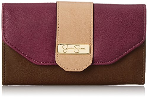 Jessica Simpson Madelynn Medium Flap Wallet, Maroon/Henna/Sand, One Size