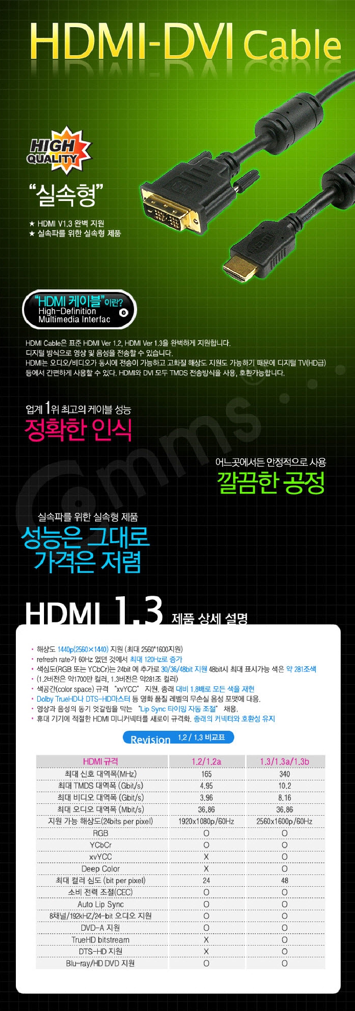 High-performance video cable HDMI DVI connector