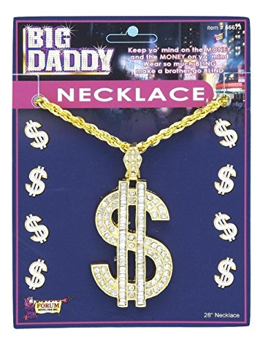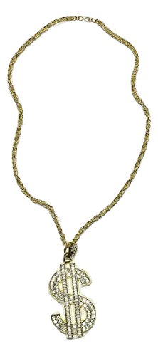 This necklace has clear crystals set in a gold-colored dollar sign pendant. One Size fits most adults.