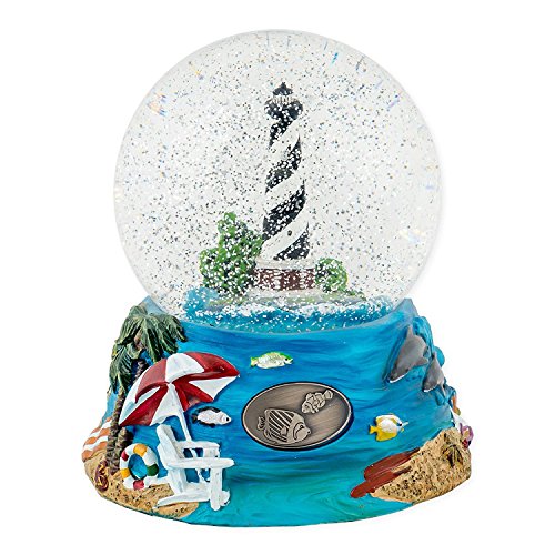 Nautical Lighthouse 100mm Resin Glitter Water Globe Plays Tune Over The Waves