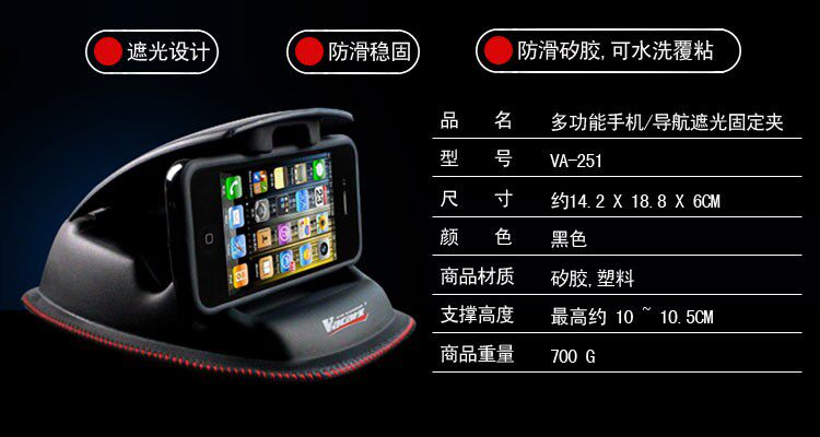The end product is a vehicle skid pad, into the bottom of the product as well stick with TPU rubber product placement as GPS, cell phone, PDA, MP3 and other shading box bracket, it has non-slip effect. Avoid driving when shaking generated by GPS , cell phone, PDA, MP3 and other products fall. can be adapted to the different sections of the shape of the dashboard of the car to use, easy to place consumer preferences in different locations. this is a disc can replace sandbags + suction cup bracket + HOLDER + visor features products to meet the more stringent regulatory requirements, product appearance, simple, easy to use and durable, the majority of consumers.