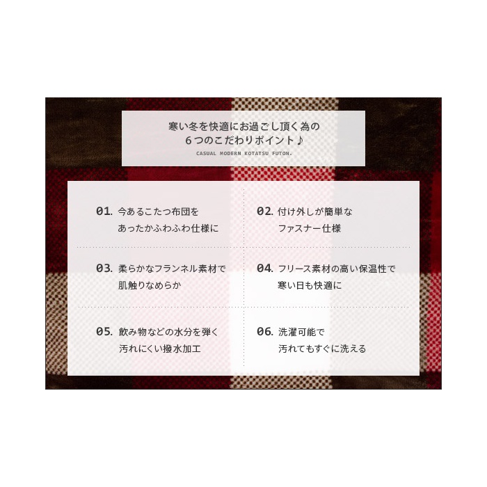 사용하는 난로 이불을 간단하게 폭신폭신 였다 사 난로 이불에 변경 할 수 있는,난로 이불 커버“JOURNAL”(저널).촉감 매끄러운 부드러운 flannel 소재와 보온성의 높은 플리스(fleece) 소재를 사용하고 있고, 따스한 편안히인 마무리되게♪지금 어느(있는) 난로 이불을 재이용 하는 것으로,교체매입보다(부터)도 싸게,경제적에,방의 변경으로도 손쉽고 편리♪또한세탁 이 생기는 때문에,깨끗함인 상태에서 길게 심부름꾼 받을 수 있는 몹시 편리인 난로 이불 커버가 되어 있습니다♪