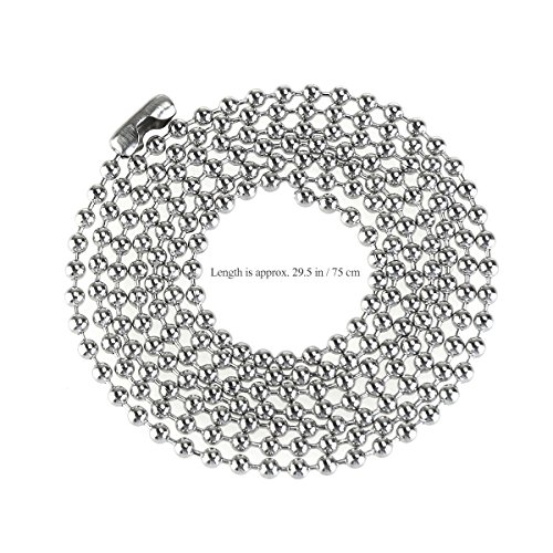 Adjustable Length. Each silvery bead is 3/32 inch in diameter (0.94"), the most popular size for bead chain. You can easy cut each chain to shorter length or connect them together. Each chain has a ball chain connector (additional comes with three for each kit).