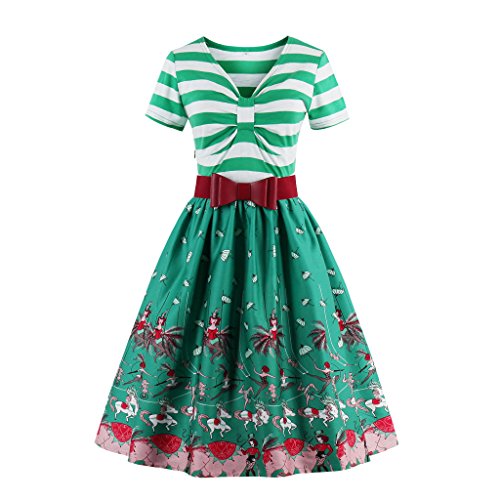 Wellwits Women's V Neck Stripes Fall Pleated Swing Dress With Belt Yellow XL