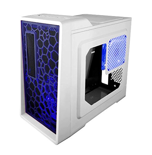 APEVIA X-ENERQ-WHT Micro ATX/Mini ATX Gaming/HTPC Case, Supports Video Card up to 290mm/ATX PS, 1 x Window, USB3.0/USB2.0/HD Audio/SD/Micro SD Ports, 2 x 120mm Blue LED fans, Dust Filter – White