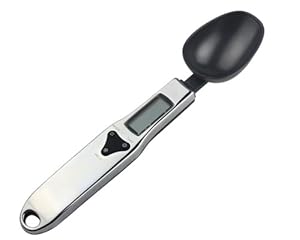 Digital spoon scale with LCD display.