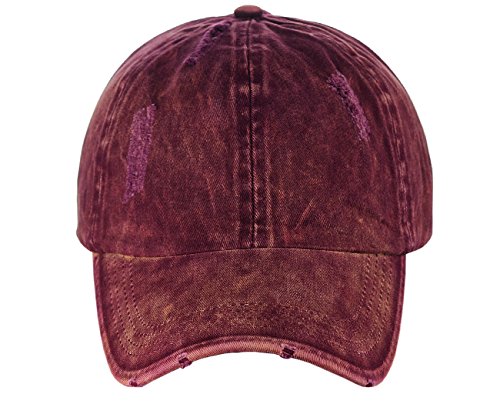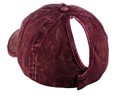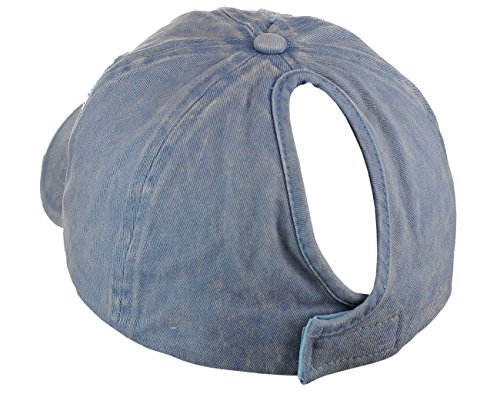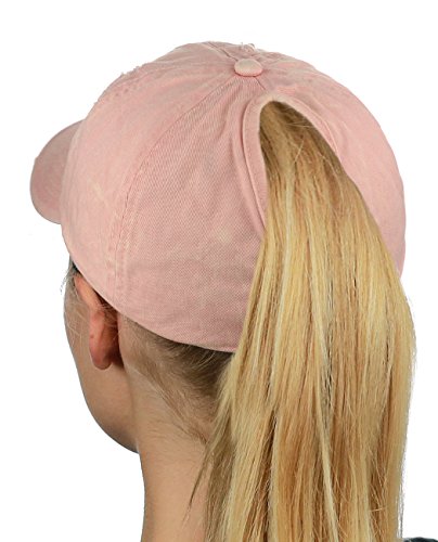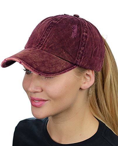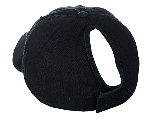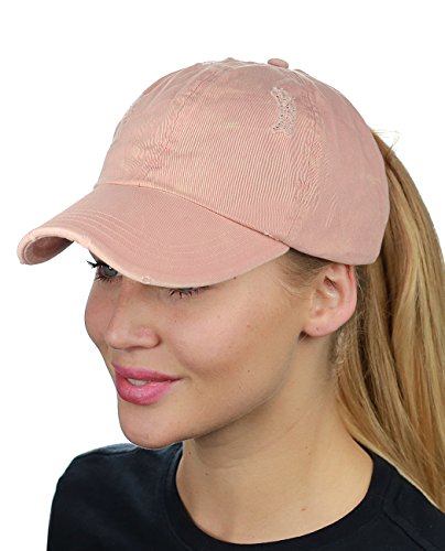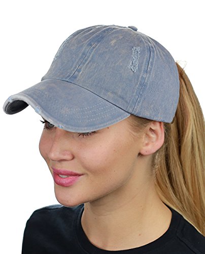 -. Binding : Apparel -. Brand : D&Y -. Department : womens -. Feature : One size fits most, circumference approx. 57cm / Made with 100% cotton / Simply adjust ponytail or man bun to desired style, then close fastener to secure in place / Distressed style front panel and precurved bill / Great for all seasons and provides shade while running quick errands, marathons, enjoying outdoor activities -. ProductGroup : Apparel -. ProductTypeName : HAT -. Title : D&Y Ponyflo Ponytail Messy High Bun Distressed Adjustable Cotton Baseball Cap