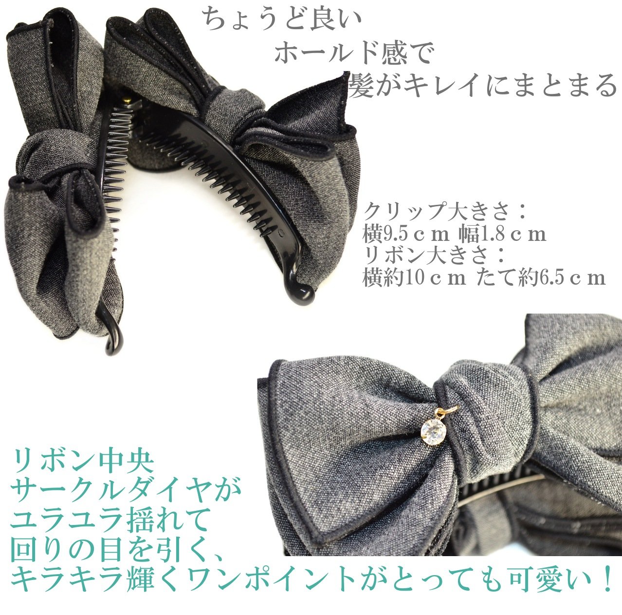 Clip size: width 9.5 cm width 1.8 cm ribbon Size: side approximately 10 cm fresh about 6.5 cm