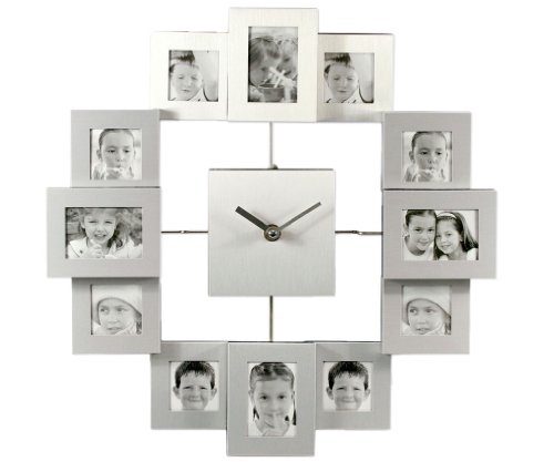 (Micro Traders)/Nursery/Nursery Decor/DIRECT FROM USA/Micro Traders Sliver Modern Family Multi Photo Frame Wall Clock - 35cm35cm - ...