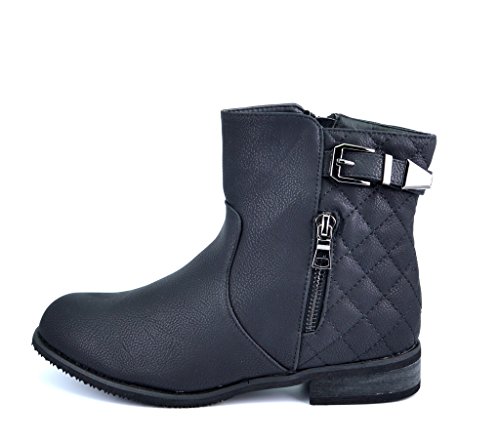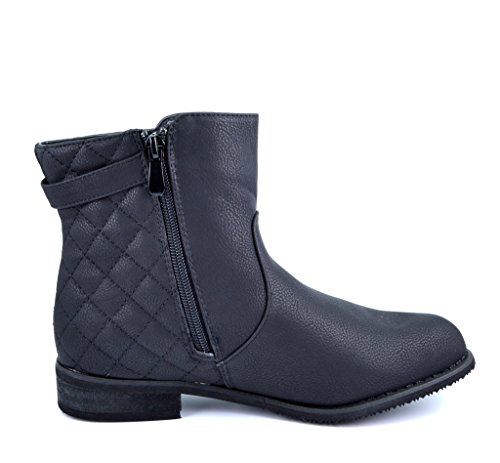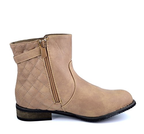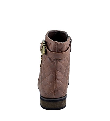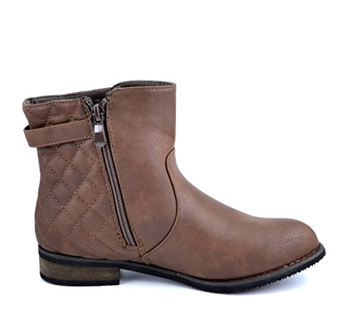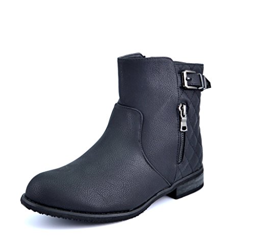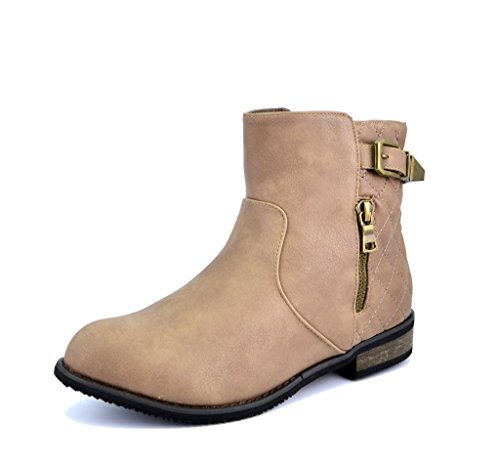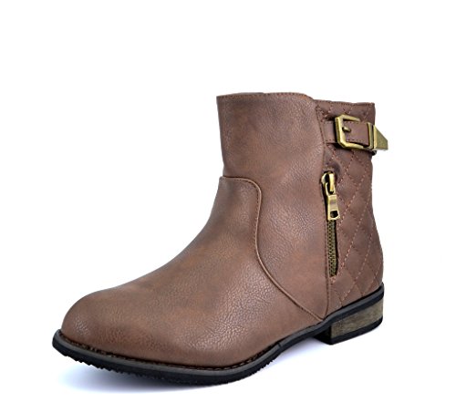 Product Description Look stylish and feel comfortable with these Dream Pair Zippos Boots! Featuring leatherette upper with quilted back design, almond toe, gold-tone side zipper decor, chunky flat heel, functioning side zipper closure, stitching detail, and finished with cushioned insole for comfort. For sizing: if you are half size take a size up. 0