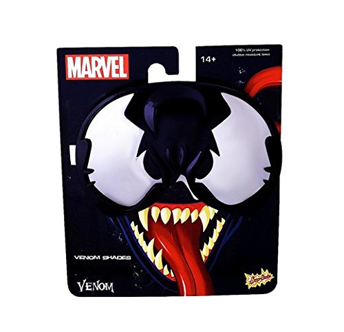 -. Binding : Toy -. Brand : Sun-Staches -. ClothingSize : One Size -. Color : Black -. Department : unisex-adult -. EAN : 0878599411176 -. Feature : Venom sunglasses perfect for any party / 100 percent UV 400 protection / Instant party starter and very comfortable to wear / Fun for adults and children of all ages / One size fits most, as seen on Shark Tank -. Label : Distributed by H2W -. Manufacturer : Distributed by H2W -. Model : Marvel_venom -. MPN : Marvel_venom -. NumberOfItems : 1 -. PackageQuantity : 1 -. PartNumber : Marvel_venom -. ProductGroup : Toy -. ProductTypeName : TOYS_AND_GAMES -. Publisher : Distributed by H2W -. ReleaseDate : 2017-06-26 -. Size : One Size -. Studio : Distributed by H2W -. Title : Sunstaches Venom Sunglasses -. UPC : 878599411176 -. Warranty : No Warranty