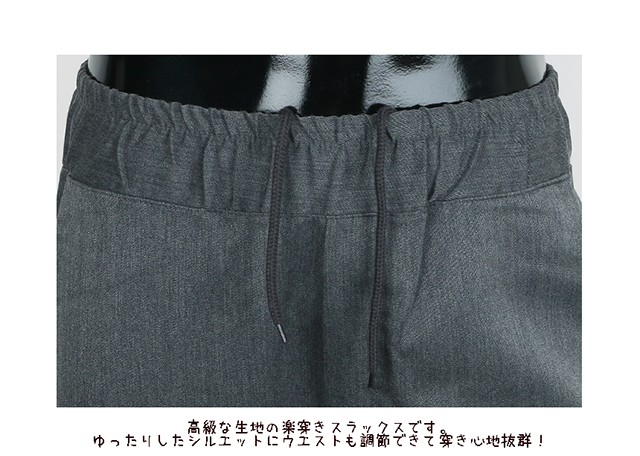 ベーシックなデザインの楽穿きスラックスです。