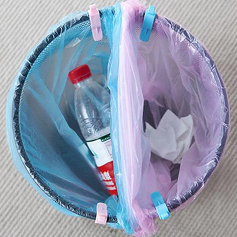 Just clip the trash bag on the trash can edge, easy to use.