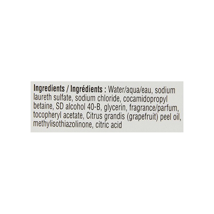 전성분:수,설대 레스 유산Na,코가《미도푸로피루베타인》,염화Na,글리세린,구연산,그레이프 후루츠 과피유,메칠 ISO《지아조리논》,향료