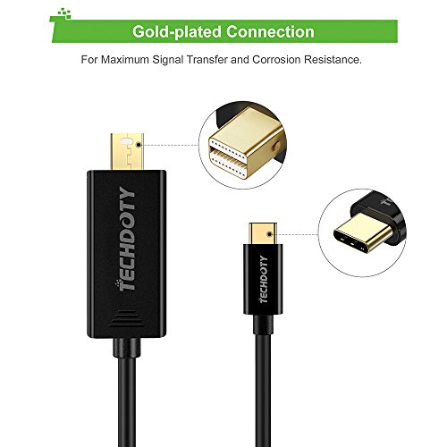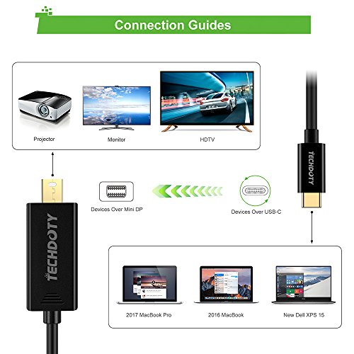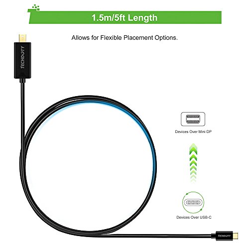 USB-C to Mini DisplayPort Cable (4K@60Hz, 1.5m/5ft), TECHDOTY USB Type C to Mini DP Active Adapter Cable for 2017 / 2016 MacBook Pro, 2016 / 2015 MacBook, Galaxy S8 / S8 Plus and More