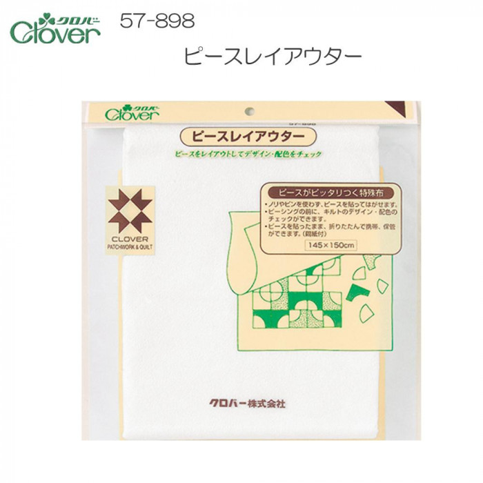 布がピッタリ付く特殊布なのでカットしたピースをレイアウトしてデザイン・配色チェックができます。 製造国:日本 素材・材質:ポリプロピレン、ポリエステル 商品サイズ:145×150cm 仕様:間紙付き ※サプライヤー直送品 ご注文後3~4営業日後の出荷となります【商品名】クロバー ピースレイアウター(間紙付) 145×150cm 57-898