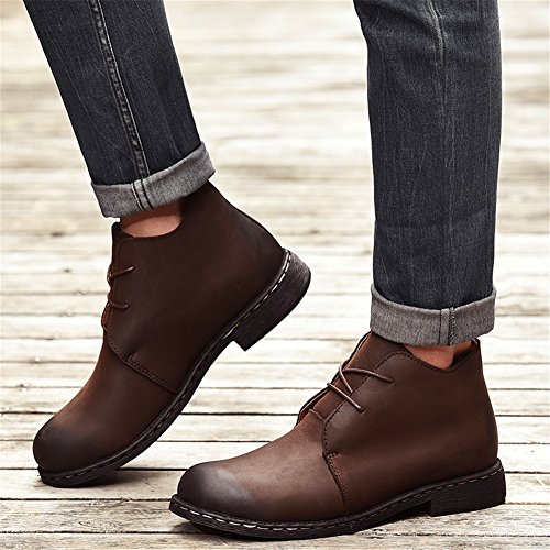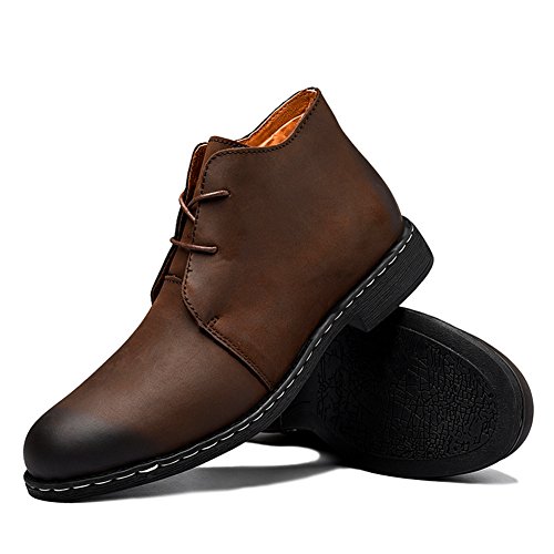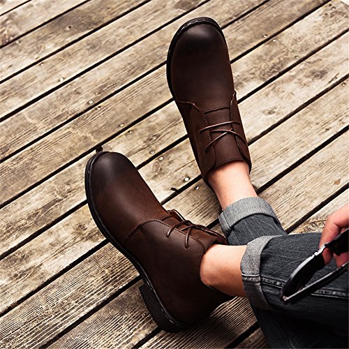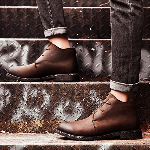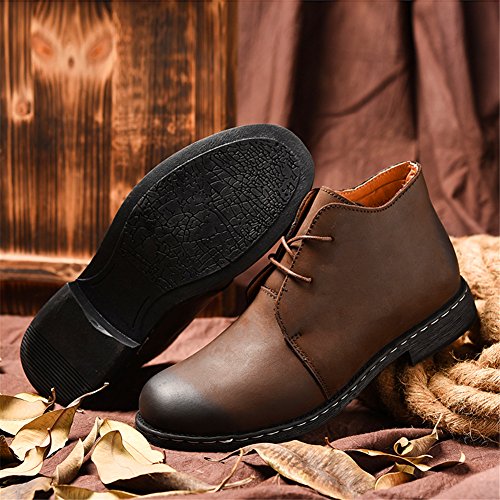 Binding : Apparel Product Description Style: high to help tooling shoes Toe style: round head Closed: lace-up Upper material: two layers of leather (except cattle suede) Help surface material: two layers of leather (except cattle suede) Sole Material: Rubber Production process: handmade shoes Heel high: flat with Inside the material: pigskin pattern: plain Popular elements: car suture Occasion: everyday Style: England Season: Spring and Autumn Function: wear-resistant Suitable for: youth