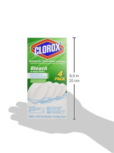 ReleaseDate : 2015-04-11 Studio : Clorox Company Publisher : Clorox Company Binding : Health and Beauty Product Description Clorox Automatic Toilet Bowl Cleaner kills 99.9% of household germs in toilet bowl water with every flush. This easy-to-use tablet works day and night for up to 3 months to help keep your toilet clean and deodorized. It also repels tough hard water, mineral and lime-scale stains, for a brighter toilet bowl in between regular cleanings. Simply drop the tablet it in your tank and let it get to work. With Clorox Automatic Toilet Bowl Cleaner, a fresher, cleaner toilet is only a flush away. 0