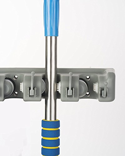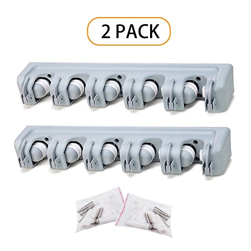 Mop and Broom Holder,Imillet-Wall Mounted Orgnizer-Mop and broom Storage Tool Rack with 5 Ball Slots and 6 Hooks (Gray ) (Double pack)