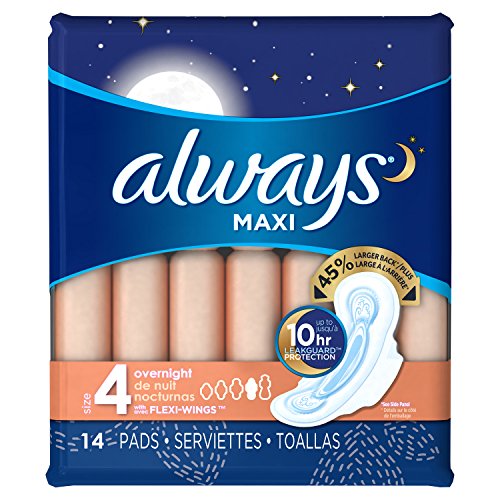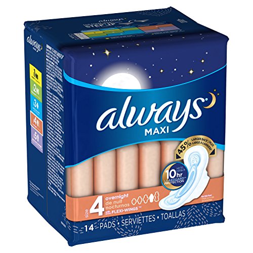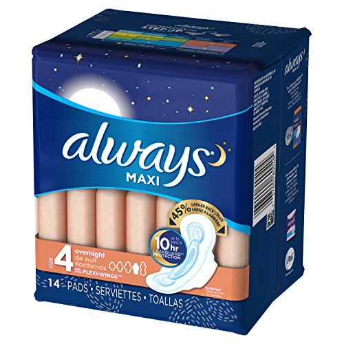 (Always)/Health Care/Women's Health/DIRECT FROM USA/Always Maxi Size 4 Overnight Feminine Pads with Wings, Unscented, 14 Count - Pack of 4 (56 Tota...