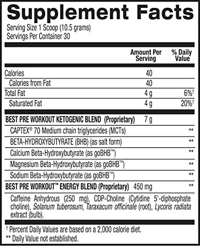 Best Pre Workout also includes BHB and MCTs, with the addition of caffeine. Anyone on a ketogenic or low-carb diet, endurance athletes like marathon runners, and those doing intermittent fasting or fasted cardio can benefit from the boost of energy caffeine provides. Power through your workouts and your everyday tasks. 0