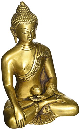 SouvNear Thai Buddha Meditating Peace Harmony Statue, [Dhyana Mudra] Religious Decor Handmade Brass Antique Look Shakyamuni Sculpture Figurine [ 6 Inch Large / Weight 2.2 Pound ]