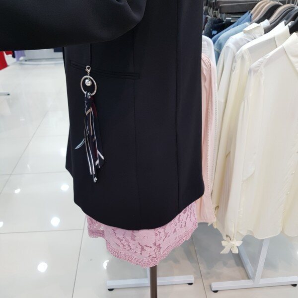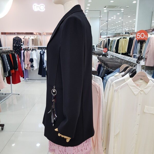 얇은소재감으로 여름까지도 입으실수있는 기본 테일러드 자켓으로 주머니에 키링 장식이 포인트가되어 세련된느낌을주며 탈착 가능한 아이템