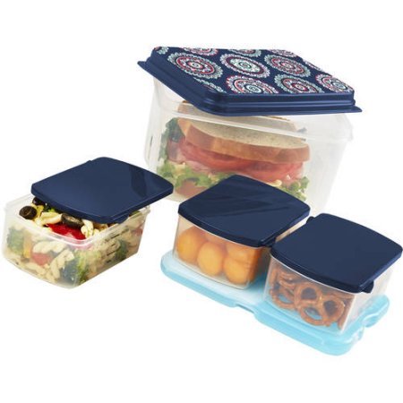 - Lunch container set includes one 8-cup container, two 1-cup containers and one reusable ice pack
