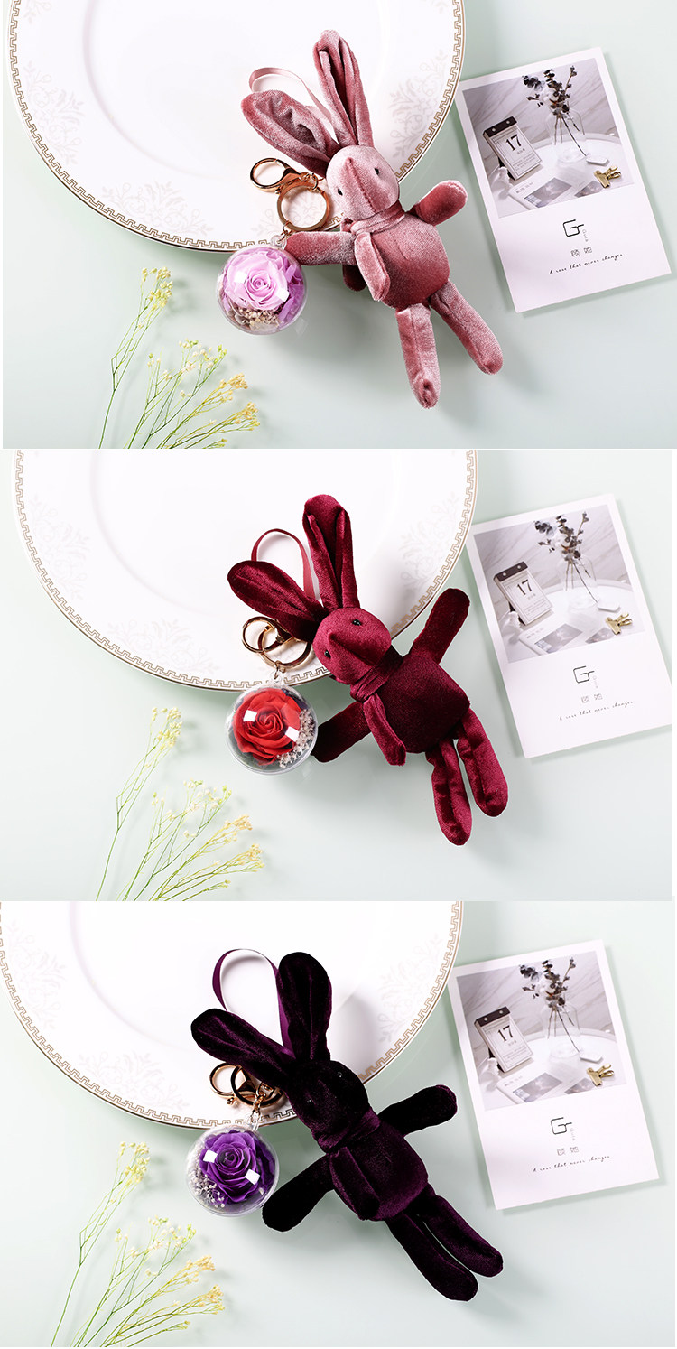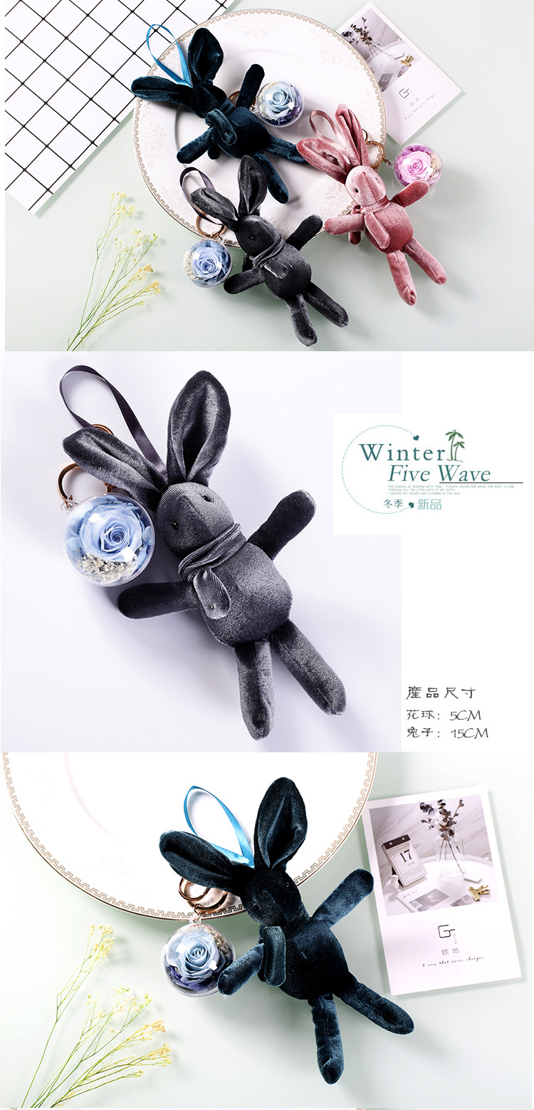 Preserved Rose Bag Charm Rabbit Keychain Flower Ball: 5cm