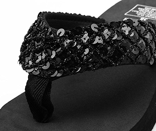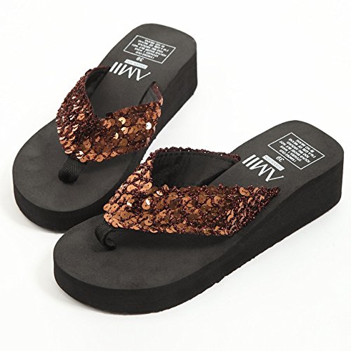-. Title : (ミネセンム)Minesam レディース 女性 ビーチサンダル 軽量 厚底 スパンコール  ボヘミアン サンダル Tストラップ ビーチサンダル 履きやすい シンプル 滑りにくい ウェッジソール トングサンダル ブリンブリン