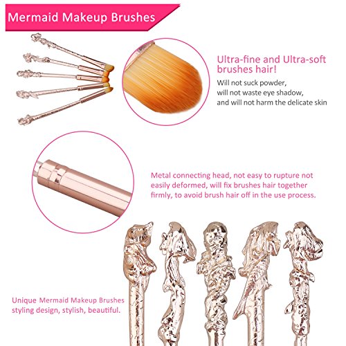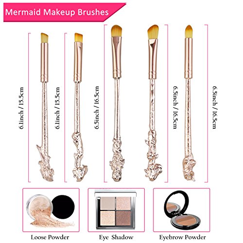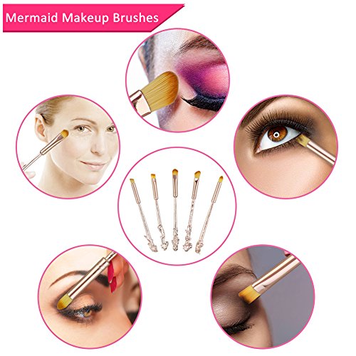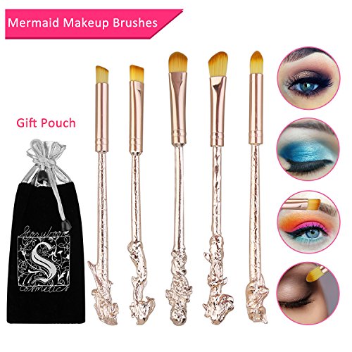 Mermaid Eyeshadow Makeup Brushes - XREXS 5 Pack Metal Magic Mermaid Eye Shadow Blending Brushes Sets, Cosmetic Makeup Tool Kit Beauty Tools with...