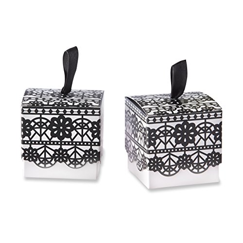 Kate Aspen Lace Print Favor Box (Set of 24), Black/White