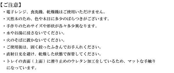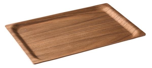 | 表面に滑りにくい加工を施したウォールナットのトレイです。持ち運びしやすい縁の幅と高さ、テーブルに置いたときは省スペースになるよう設計されたスリムなデザインです。 |
