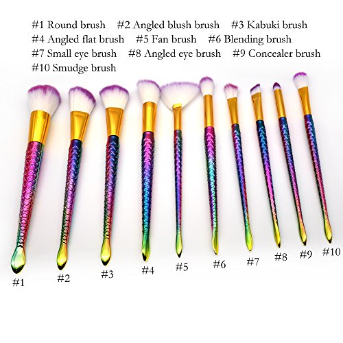 ④ Details and Design: Exquisite, dark colorful mermaid handle provides a good grip, with premium soft bristles. Quality and sleek packaging extends the luxury look also making it gift-ready product