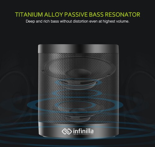 -. Title : Portable Wireless Bluetooth Speaker, Infinilla V4.0 Enhanced Bass Stereo Speakers for Home and Outdoor, Built-in Microphone, FM Radio, 12 Hours Playtime
